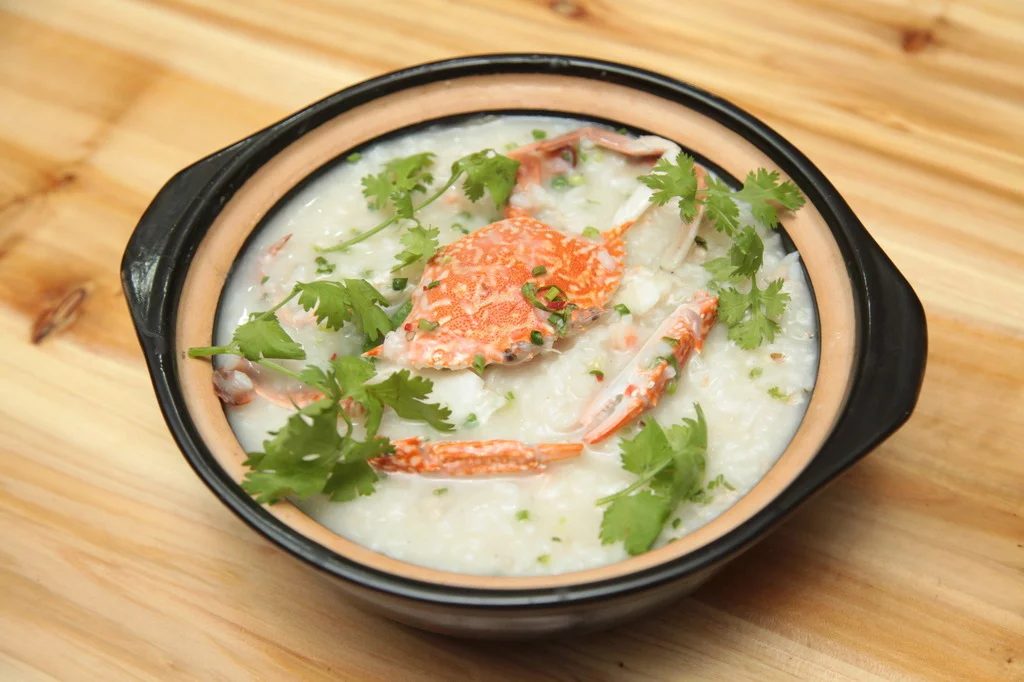 海蟹粥是一道美味的菜肴,主料有海蟹、大米、芥蓝等。