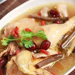 鸡1000克、枣(干)10颗、当归10克、党参10克来自、枸杞子5克、食刘盐适量、姜适量、小葱适量