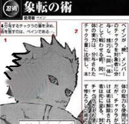 佩恩将"晓"成员的查克拉分到活人祭品身上制造出一个精巧的"同一体"来战斗的忍术