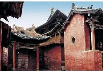 山门最古,为金时原构,一进院为单檐悬山顶戏楼五开间,两层,下层砖砌高台,中柱上装青石门框及板门望边规金际道间叶府方司,门框上线刻花纹,图案秀美。上层施平座及勾栏,粱架现整简洁,结构已具元代来自爬梁的雏形。