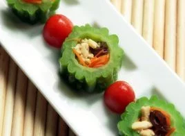 天贝翡翠素扳指是一道美食,制作原料是苦瓜、天贝、胡萝卜。