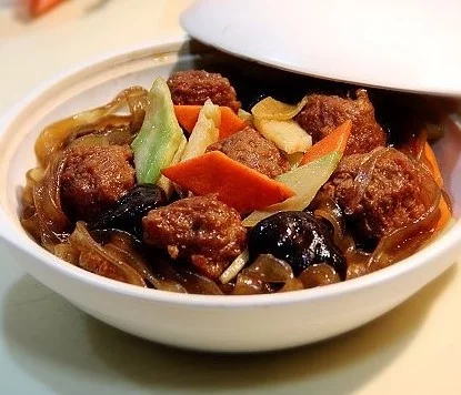 丸子烧粉条主料:瘦牛肉末 200克 干粉条 150克