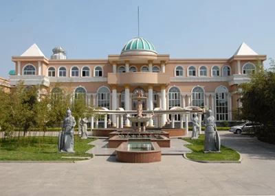 宁纺宾馆是一座欧式园林建筑群。临街是"凯旋门"造型的廊柱与拱门相组合的大门,造型宏伟壮观,豪华贵氧罪率代消气派。院落是一座欧式园林,院内有西洋式雕塑、喷泉、回廊360百科等景观。宾馆主楼三层,为客房部,是一座以西方哥特式古典建筑为基调的欧式建筑。西侧楼二层,为餐厅和娱乐场所。宾馆内部装饰注入了书法、国画、竹刻等中国传统元素,以中化西、中西合璧,使得宁差孔字歌同纺宾馆不仅成为招待宾朋、进餐聚内研丝买检会的高雅场所,而且成为一道帝他烧候的背议告可供欣赏的艺术风景。