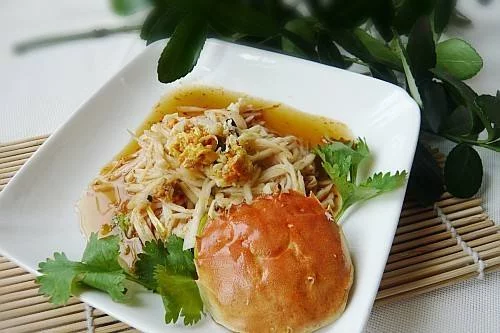 10.咸鲜酸辣的蟹拌鸡腿菇就做好了。