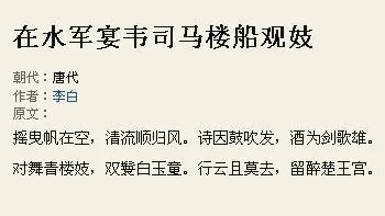转载请注明出处安可林文章网 » 在水军宴韦司马楼船观妓
