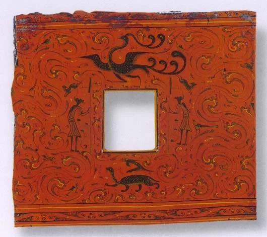 转载请注明出处安可林文章网 » 彩绘云气鸟兽人物纹漆面罩