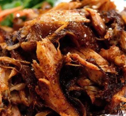众亮点:手撕兔经过严格挑选、烹调,以嫩香著称,做法十分讲究,用汁蘸食,吃法很少。