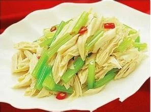 炝拌芹菜腐竹,是中国汉族传统名菜之一。制作原料主要有芹菜、腐竹等。