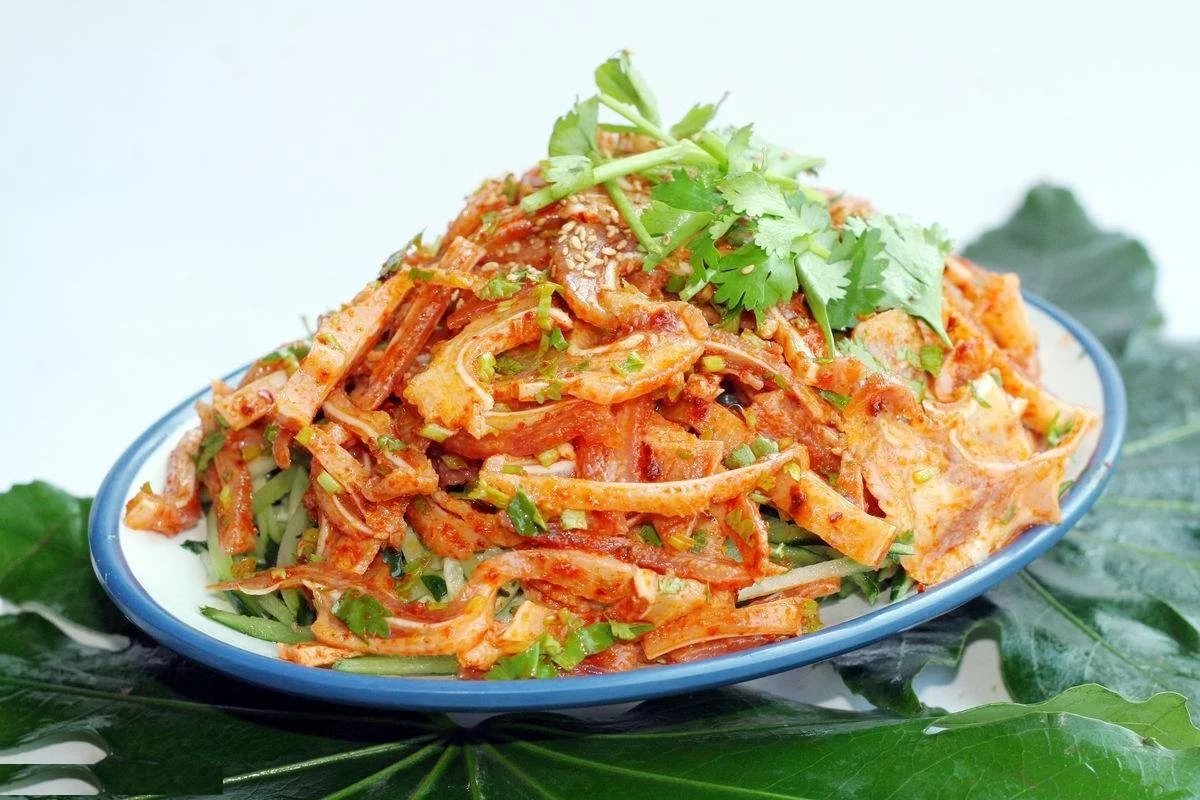 黄者便到善英庆教瓜拌猪耳朵是由黄瓜与猪耳朵两道主要食材所组成的一道家庭常备凉菜。其做法简单,香辣可口。主要配料有黄瓜、卤猪耳朵、蒜末、味精、辣椒油等适量。具有下火的功效。冷藏后再食用味道最佳。