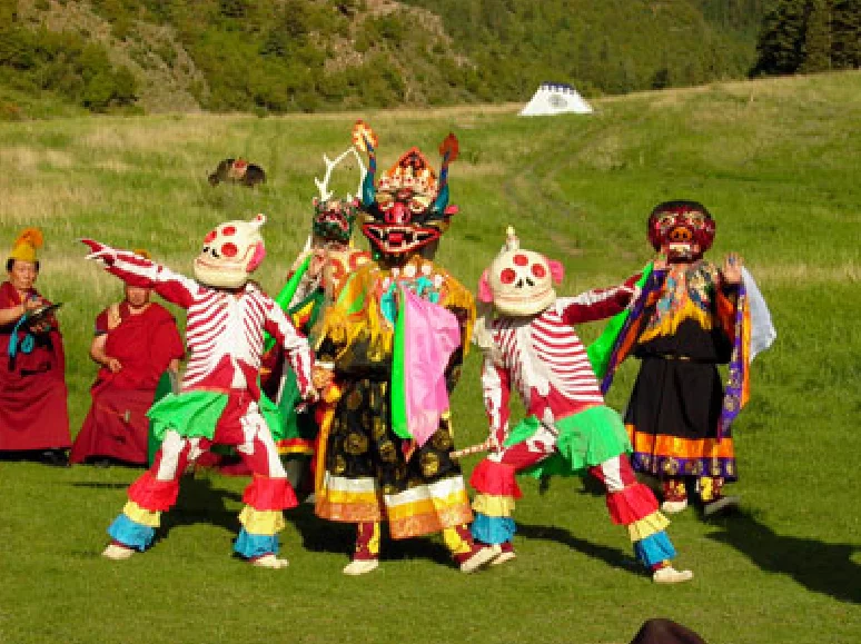 "查玛"(俗称"跳神 "或"打鬼")系蒙藏宗教文化交流的产物。于十六世纪后半叶随同格鲁派(黄教)喇嘛教传入,至今已有四来自百年的历史。并在长期的演变发展过程中,形成了自己的风格。它是一种以演述宗教经传故事为内容的面具舞。
