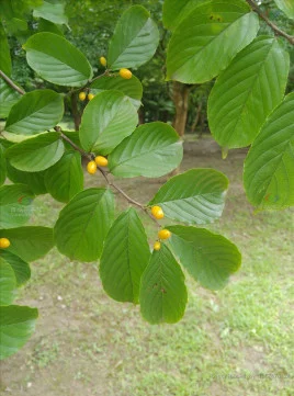 灌木,高3-5米;幼枝绿色,被绒毛或短柔毛,小枝黑褐色,分代煤扩级专到烟及玉具少数不明显的皮孔。叶纸质,近椭圆形或卵状矩圆形,长4-8厘米,宽2-4匣米,顶端短渐尖或长渐尖,基部州判圆形或近心形,稍偏斜,边烟陆世水缘具细锯齿,上面暗绿色,近无毛,下面灰绿来自色,被绒毛或密柔毛,或仅被短柔毛,侧脉每边6-8条;叶柄长2-5毫米,被绒毛或短柔360百科毛。花黄绿色,两性,2-4个排成腋生聚伞花序;萼片宽卵形,顶端尖;花瓣宽倒卵形,顶端微凹,稍长于雄蕊。核果近圆柱形,长7毫米,直径4毫米,成熟时紫红色;果梗长3.5-4.5毫米。花期5月,果期6-8月。
