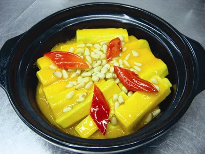 松子黄金酱南瓜煲是一道由松子,红椒等食材制作而成的食品。