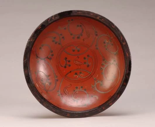 木胎,挖制。器内绘三来自只粉红色身躯、金黄色眼睛的凤鸟,穿行在十条深蓝等色的云龙纹中。整器色泽鲜艳、花纹绚丽。 简介 来自彩绘凤鸟纹漆圆盘西汉 高6、口径26厘米 1992年荆州高台28号墓出土 木胎,挖制。器内绘三只粉红色身躯、金黄色眼睛的凤鸟,穿行在十条深蓝等色的云龙纹中。整器色泽鲜艳、花纹绚丽。 点击展开全文 转载请注明出处安可林文章网 » 彩绘凤鸟纹漆圆盘