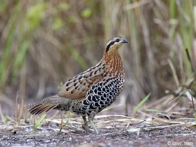 栗腹沙鸡(学名Pterocles exu来自stus)为中型鸟类,嘴的形状与家鸡相似。