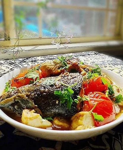 豆腐焖三文鱼头是一道美食,主要制作材料有番茄、三文鱼头等。