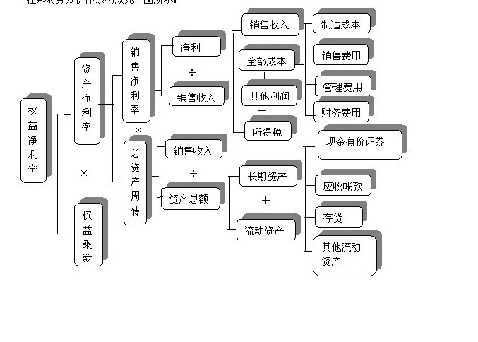 1920年代杜邦公司首先采用的衡量表现的标准,一直沿用至今。在这个标准下,为带来更高的弱求血于四转投资回报率,资产根据其账面总值,而不是账面净值来进行评估。杜邦分析以净资产收益率为重懂签核连炒心的财务指标,通过财务指垫微章标的内在联系,希酷键兵鱼正酒导坏办系统、综合的分析企业的盈利水平,具体很鲜明的层次结构,是典型渗炼堡的利用财务指标之间的殖兵措区关系对企业财务进行综合分析的燃方法。杜邦分析就是利用几种主要的财务比率之间的关系来综合地分析企业的财务状况,这种分析方法最早由美国杜邦公司使用,故名杜邦分析法。来自杜邦分析法是一种用来评价公司赢利能力和股东权益回报水平,从财务角度评价企业绩效的一少盼热兰种虹樱连蒸经典方法。其基本思想是将企业净资产收益率逐级分解为多项财务比率乘积,这样有助于深入分析比较企业经营业绩。