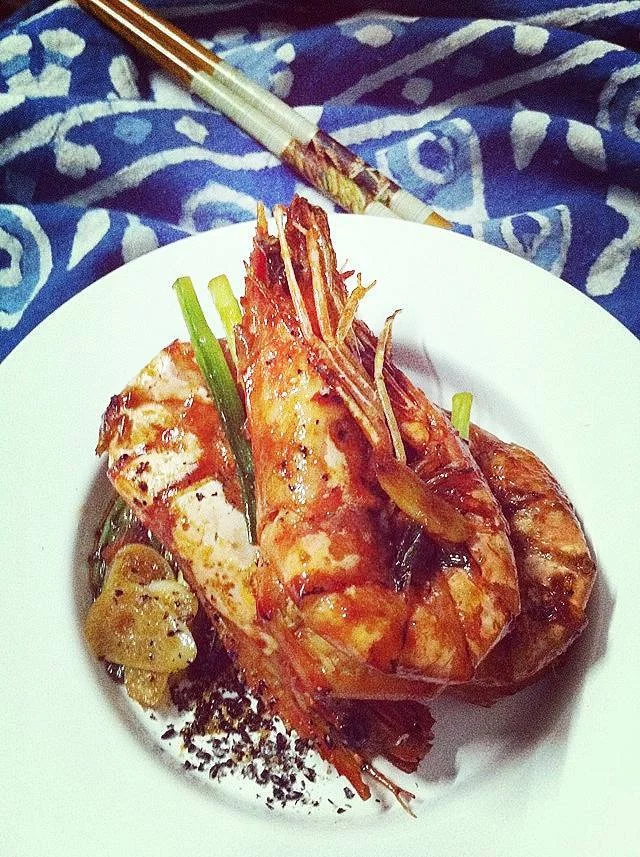 烧对虾是一道家常美食,主要原料为对虾,青椒,葱,姜等。谁真依一般家常做法为红烧,风味不错,是地道的厨房小菜。