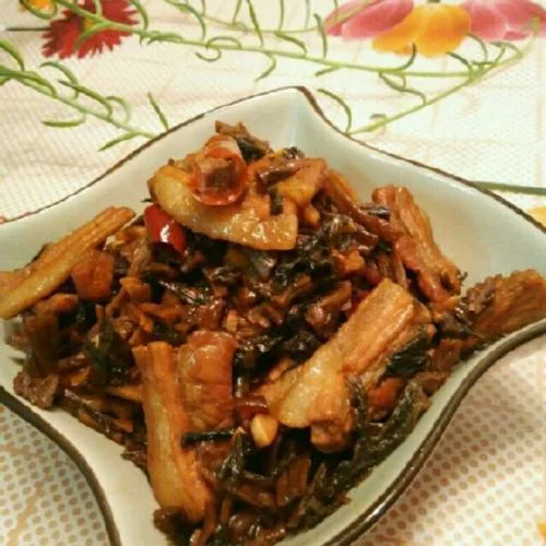 4.锅内倒油烧七成热加入干辣子煸出味。