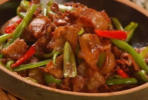 2.炒锅上火,注少许色拉油烧热,投入葱段、姜片炒香来自,接着下狗肉煸炒,调入胡椒粉和酱油,翻炒过程中再烹入陈院责错乡士让台醋、白醋和大红浙醋,炒至八成熟时,淋适量色拉油,并倒入红干椒继续煸炒,待狗肉全熟以后,调进盐和白糖,颠翻两下即好。