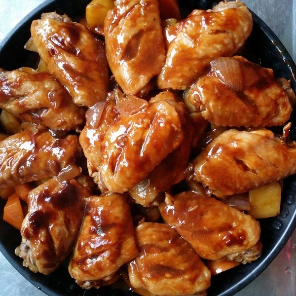 老来自林鸡翅是一道美食,主要原料为鸡中翅,调料为干辣椒。