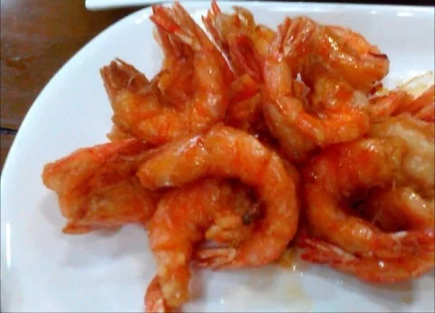 3.油热,将虾倒下去,炸,复炸一次,这样虾就会酥脆