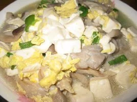 - 主料 嫩豆腐1块,平菇100克、鸡蛋1个