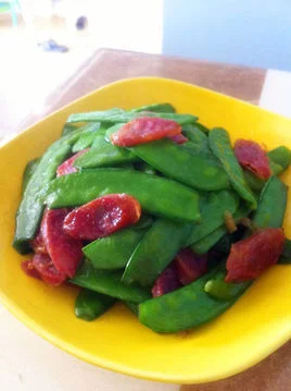 - 中文名称 广式腊肠炒荷兰豆