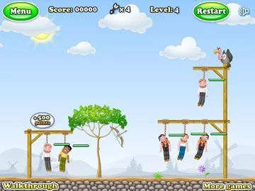 - 游戏目标 射断小人脖子上的绳子,救出小人
