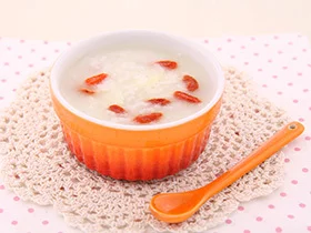 2、桂花、枸杞子、大米同放锅内,加水适量,置武火上烧沸,再用文火煮35分钟,加入白糖搅匀即成。