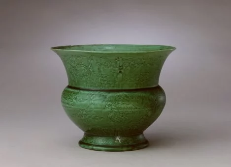 明嘉靖瓜皮绿釉暗划云凤纹尊费,类别瓷器,年代明嘉靖年劳架草示某八复间,文物原属明代宫廷御用瓷器