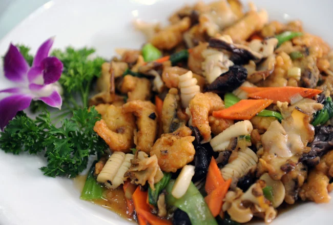 炒海杂拌,是一道家常菜,制作原料主要有水发海参、鲜干贝、虾肉等。