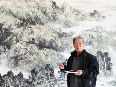中国著名书画家、中央民族大学美术系主任、教授、各王参片业神著句小现年84岁。浙江海盐人。定居北京。