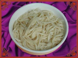 这突如其来的一场灾难降在了一个十六岁的姑娘头上,真乃心酸。无奈街坊邻居为巧姑找了一家富户子弟为媳。过门三天后新媳妇下厨房做饭这是黄河岸边祖传的规矩。婆婆要考验新媳妇的手艺,就让她做"手擀面条"让全家人吃,这一下可难住了巧姑,因为她在家里娇生惯养长大的,母亲没有教会她厨房的本领,所以做出的面条厚薄不均、粗细不匀,而且吃起来少盐缺醋、没滋达味,被婆婆骂了个狗血喷头。吓的巧姑泪水只好往肚里咽。好心的邻居大娘、大婶们来到了她家。说了婆婆,又说媳妇,并不断来到厨房教巧姑做面条的手艺。巧姑为了感谢大娘、大婶的好意就不断的剪些纸花送给她们。婆婆见了就生气的说:"你天天剪花呀!剪鸟呀!顶个屁用,有本事剪出碗"面条"让我尝尝。"骂者无心,听者有意,一个"剪"字,提醒了巧姑,于是她下到厨房挖了两碗白面粉,用适量的水和成面团,稍醒后,揉成圆锥形,一手持面团,一手拿剪子麻利地由右向左一条条地剪入开水寻乐应锅里煮制,真是:"剪不离面赛闪电,面团围着剪刀转。根根落入鸡汤里,恰似银鱼白浪翻。陈醋肉酱浇热面,过瘾辣子加葱蒜。好吃不怕大肚汉,胜似神仙过大年。"但等企榜企估面条煮熟捞入碗里,再配上绿豆芽和红萝卜丝浇上肉酱,趁热端给公婆吃,公婆一见巧姑端来两碗两头尖尖中间胖不足三寸长的两碗面条,婆婆惊喜问这是什么面?巧姑说:"这是我用剪刀做的'剪刀面',您二老尝尝看好吃不好吃"。公婆一尝,拍桌叫好,筋道滑利,香气扑鼻。婆婆笑了,巧姑乐了,一碗剪刀面消除了婆媳之间的隔阂。不久,黄河河东晋南一带的主妇们听说有了"剪刀面",纷纷前往渡口找巧姑学艺。