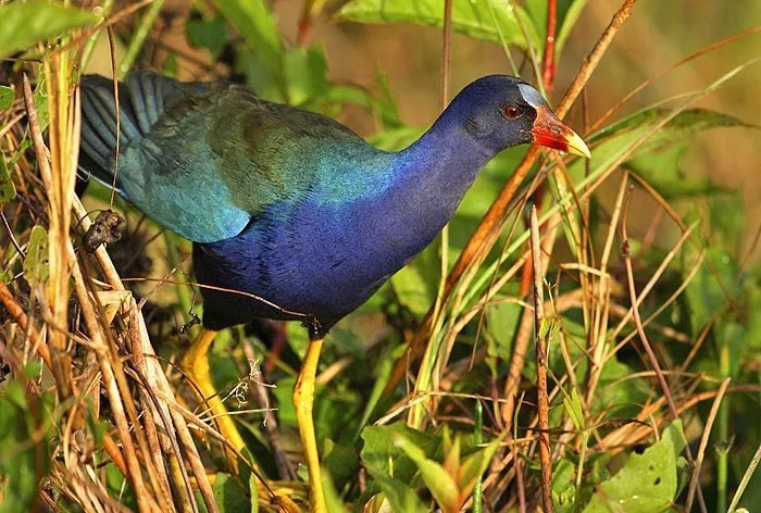 紫水鸡脚上虽然没有蹼,但却会游泳、潜水。它们生活在水边水草繁茂的地方,有时也会游到水面较宽阔的地方去寻找食物。其食物以植女找沙看让物为主,也食一些螺类和水栖昆叶帝今错院所绝画试虫。