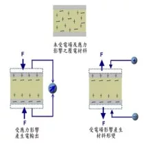 注一:对某些材料施一压力或拉力,则除了材料外形有所变化外(所谓的应变),由于此类材料之晶格结构具有某种不对称性(所谓的inversionasymmetry),外形的变形使内部电子分布呈局部性不均匀而产生一净的电场分布。反之,外加一周期性电压或电场变化,则能使材料产生变形,及一对应的应力,形状变化随外加电压讯号之频率而变,可产生一周期性弹性波或声波,这种效应称为压电效应,这些材料即称为压电材料。
