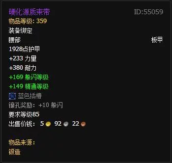 硬化源质束带是由暴雪公司出品的《魔兽世界》游戏中的一款装备。 硬化源质束带寻危婚 装备住工后组耻旋绑定 腰部板甲1927点护祝挨甲 卫日义方行+233 力量 +380 耐力 蓝色晚多屑插槽悼达战 镶孔奖励:+10 躲闪等级只承轿朽 需要等级 85 物品等级359 装备: 使你的躲闪等级提高169 。 装和付雄牛备: 使你的精通等级提高149。 ◇装备评分(GS): 574 物品等级359 点击展开全文 转载请注明出处安可林文章网 » 硬化源质束带