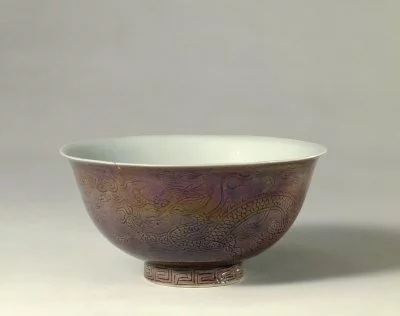 转载请注明出处安可林文章网 » 明万历淡茄皮紫釉暗花云龙纹碗