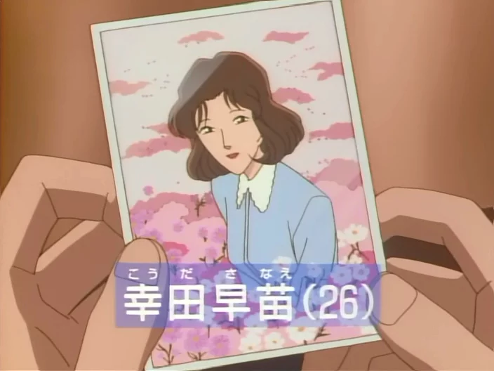 幸田早苗,是电视动画片《名侦探柯南》TV107~108中的角色,是一位在东京证券公司的女白领。在下班后,在客户家中摔下楼梯,撞到头部身亡,被客户(绵贯义一)将尸体进行了掩埋,一个月后,在她的哥哥的努力下,柯南破解此案,早苗的尸体在一株大波斯菊下被发现。