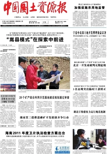 由国土资源部主管,中国国土资源报社主办的《中国国土顺资源报》,是国土资源管理公告指定发布媒体,宣传国土资源管理工作的唯一主流报纸。传达党和国家有送律关方针政策、法律法规的重要渠道,传递国土资源部工作部署和政务信息的窗口,推介典型经验、交流工作信息的重要载体。