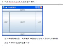 BorderLayout是一个布置容器的边框布局,它可以对容器组件进行安排,并调整其大小,使其符合下列五个区域:北、南、东、西、中,每个区域最多只能包含一个组件。