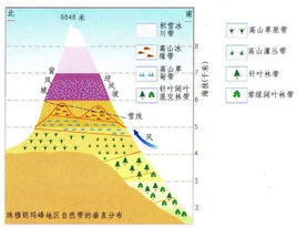 6. 山体越高,垂直带谱越完整。此外,山脉的走向也影响垂直带谱