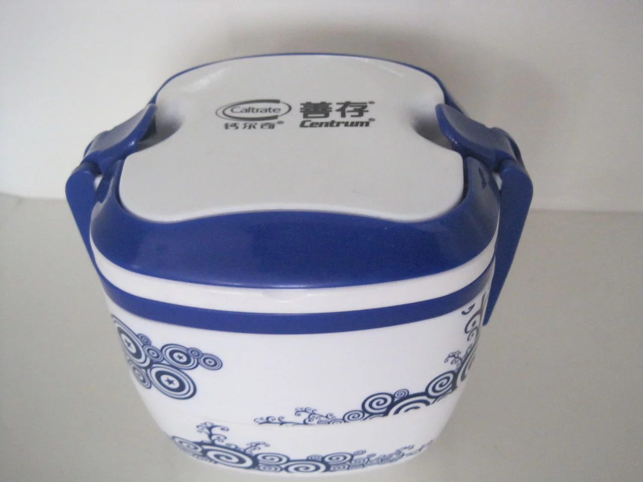 手提双层塑料饭盒,颜色分红色,蓝色。产品高档,价格实惠,礼品赠品的最佳选择。