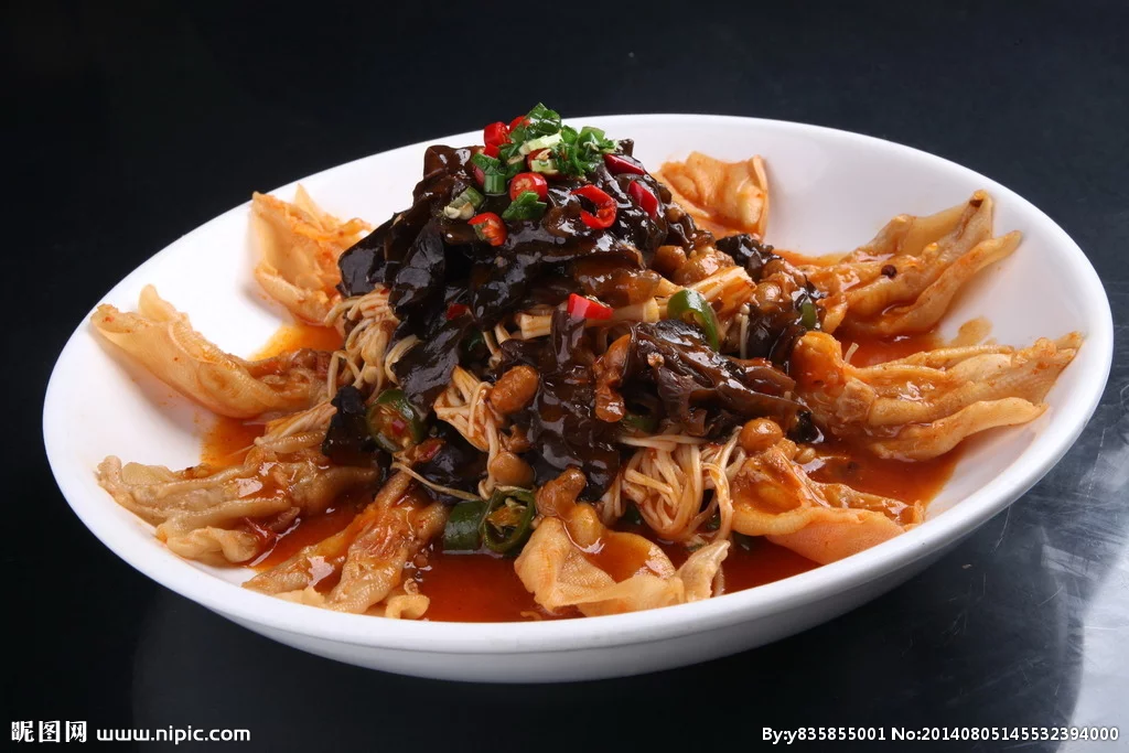4. 将水豆豉加味争神重缩丰危提口精、白糖、红油对制成味汁,淋在鸭舌上,撒葱花即成。
