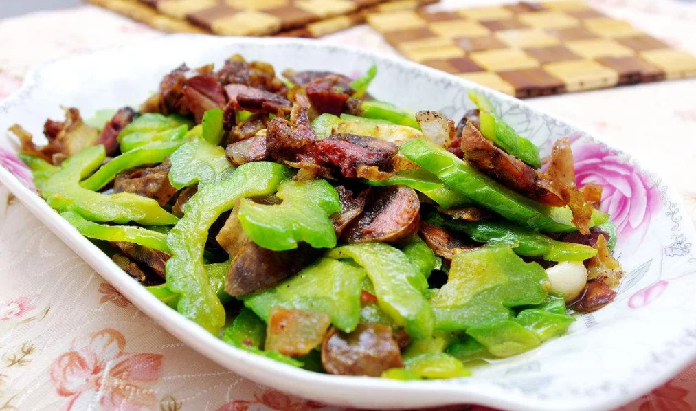 苦瓜炒腊肉是一道湖南家常菜。湖南菜多用腊品,这是因为湖南腊品有自己独特风味。