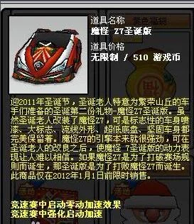 魔怪z7万前神级造金圣诞版是游戏跑跑卡丁车中的一款道具车。