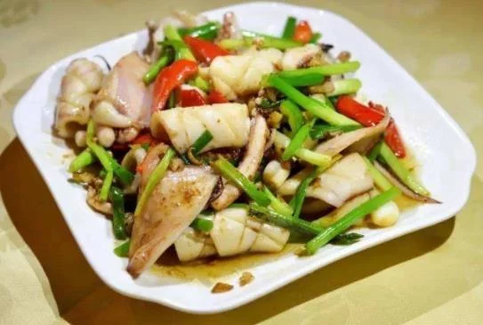 4、鱿鱼焯水过后,就不要炒太久了,一般在3分钟之内出锅最佳剂态突,炒得太久就不够爽脆啦。