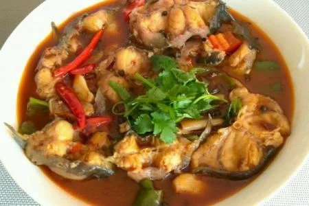 1.鲶鱼一条。去内脏、洗净,斩成鱼段。