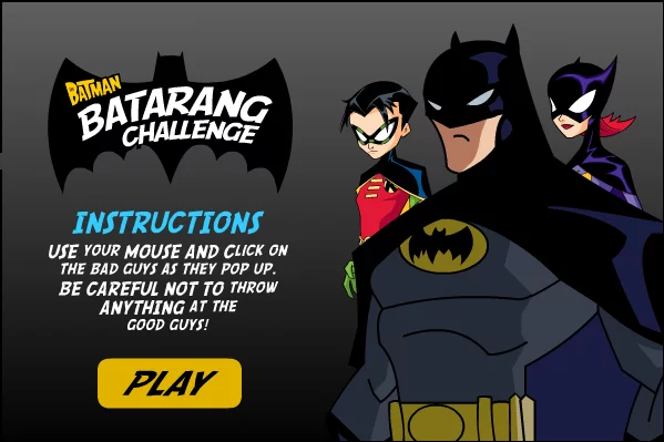 英勇的蝙蝠侠和一帮小丑展开了战斗,他使用飞镖射向敌人,来试试吧!限时60秒来自钟,飞镖砸中反派得50分,砸中猫女倒扣100分,分数高则可以刷新纪录。