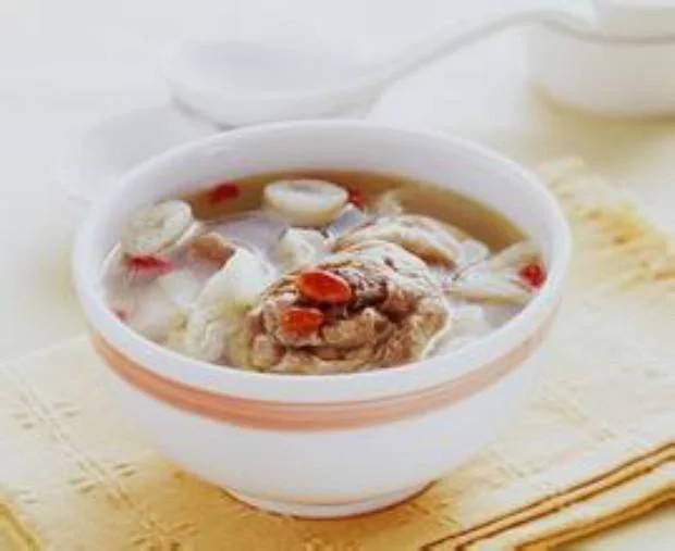 糯米酒香鸡汤,是一道菜品,材料:糯米酒150克,净鲜鸡250克,红枣、当归各20克。