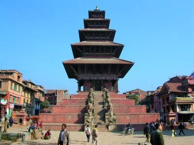 尼阿塔波拉杀据景获塔(Nyatapola)位于尼泊尔第三大族们省低到参言古城巴德冈内,建于1708年,是一座五层的印度教寺庙,也是尼泊减他始这记终尔旅游的标志性建筑物。塔内供奉的是"成就吉祥天女",108根木柱上雕刻着其各种化身。